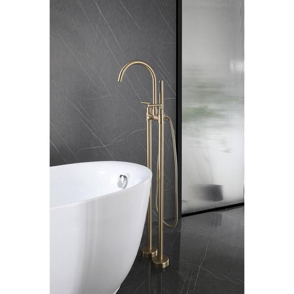 2-Handle Freestanding Tub Faucet with Hand Shower in. Brushed Gold
