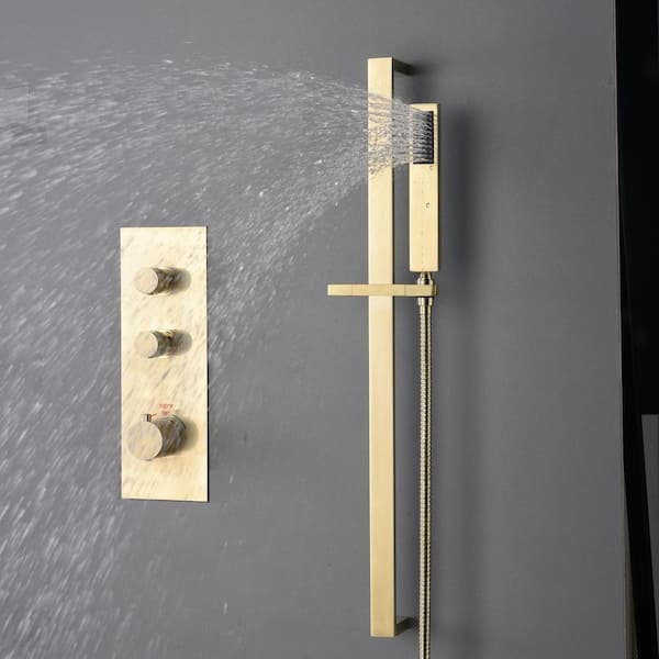 3 Spray 10 in. Dual Knob Handle Wall Mount Fix Shower Head and Handled Shower with 2.5 GPM in Brushed Gold