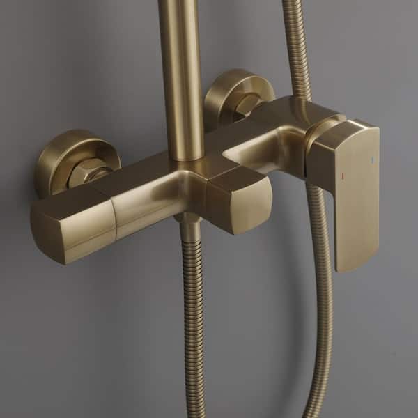 3-Spray Dual Shower Head Wall Mount Fixed and Handheld Shower Head with Hand Shower Flow Rate 2.5 GPM in Brushed Gold