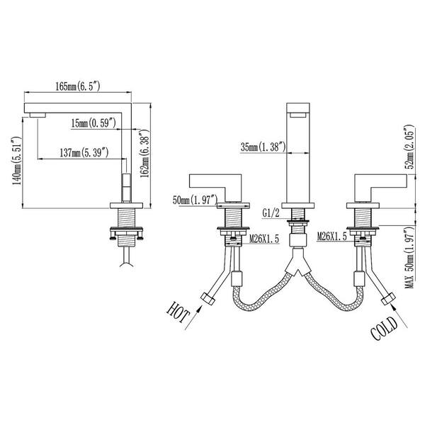 8 in. Widespread Deck Mount Dual Handle 3-Hole Square Bathroom Faucet in Brushed Gold