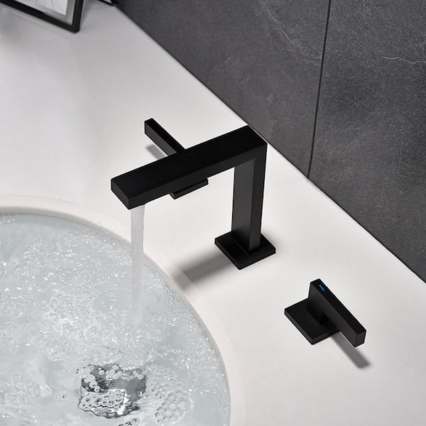 8 in. Widespread Deck Mount Dual Handle 3-Hole Square Bathroom Faucet in Matte Black