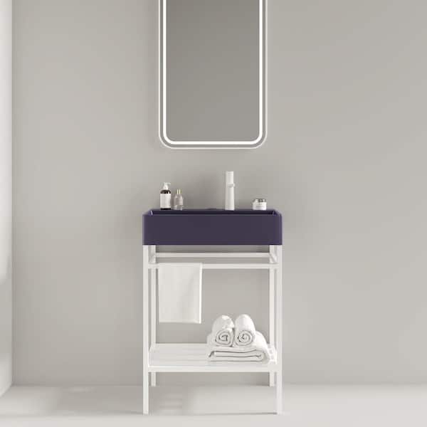 Baye 23.46 in. Bathroom Ceramic Single Console Sink in Purple with White Metal Leg