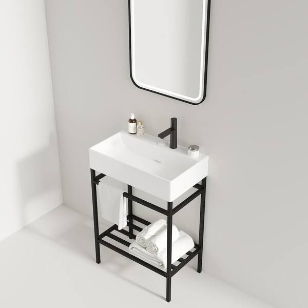 Baye 23.62 in. Bathroom Ceramic Single Console Sink in White with Black Metal Leg
