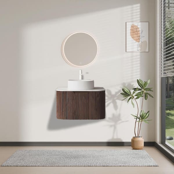 Baye 24 in. Floating Dark Walnut Bath Vanity with White Ceramic Sink and Artificial Marble Top Unassembled