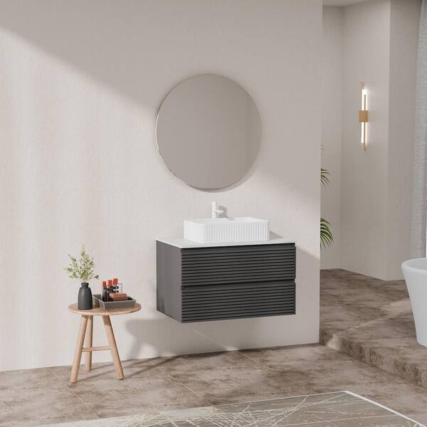 Baye 29.92 in. W Floating Gray Single Sink Bath Vanity w/ White Ceramic Sink and White Engineered Marble Top Unassembled