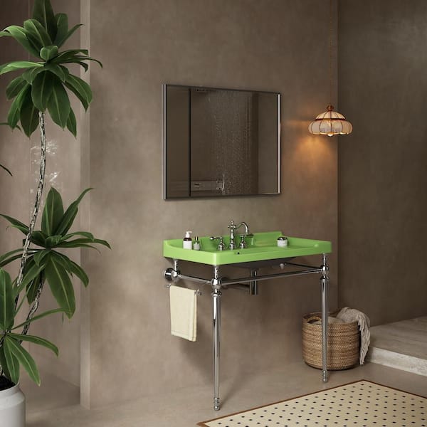 Baye 35.83 in. W Bathroom Ceramic Single Console Sink in Green with Silver Stainless Steel Leg