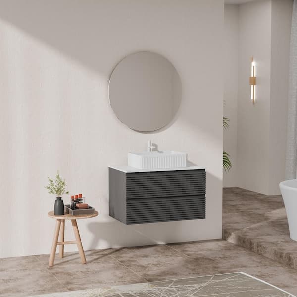 Baye 35.83 in. W Floating Gray Single Sink Bath Vanity w/ White Ceramic Sink and White Engineered Marble Top Unassembled