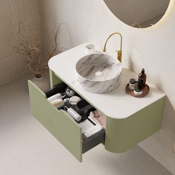 Baye 36 in. W Floating Light Green Bath Vanity with White Textures Ceramic Sink and Engineered Marble Top Unassembled