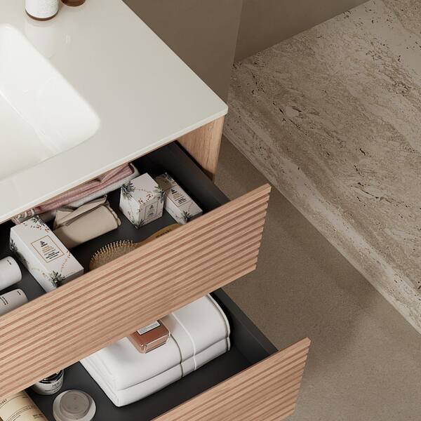 Liory 30 in. Single Sink Floating Nature Wood Bath Vanity with White Ceramic Top Pre-assembled