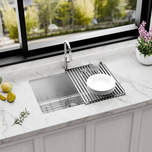 Loile 26 in. Undermount Single Bowl 16-Gauge Brushed Nickel Stainless Steel Kitchen Sink with Bottom Grids