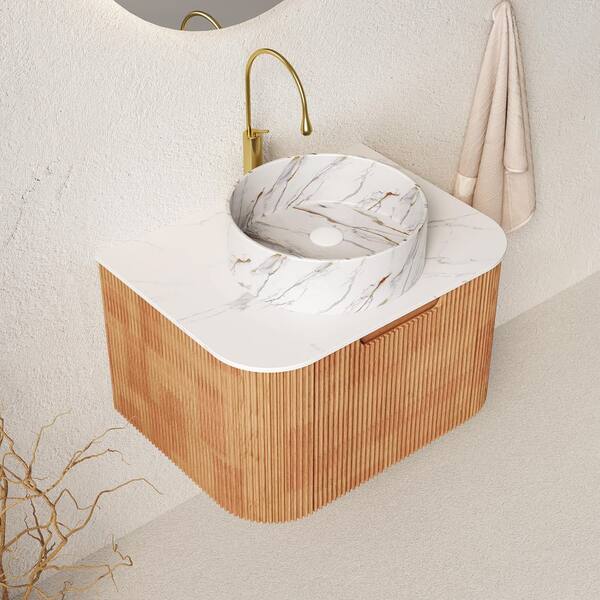 Loiry 24 in. Floating Natural Wood Bath Vanity with Ceramic Basin and White Artifical Marble Top Pre-assembled