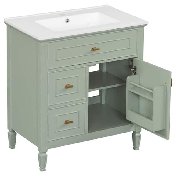 NURVIA 30 in. Single Sink Freestanding Green Bath Vanity with White Ceramic Top Unassembled