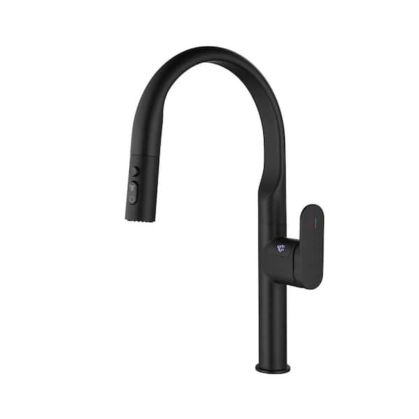 Single Handle 18 in. H Pull Down Sprayer Deck Mounted Kitchen Faucet with 360° Spout Swivel in Matte Black