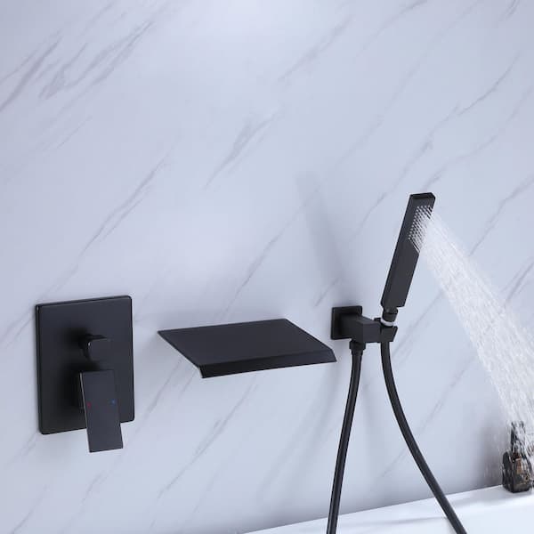Single-Handle Wall-Mount Roman Tub Faucet with Hand Shower 3-Hole in. Matte Black
