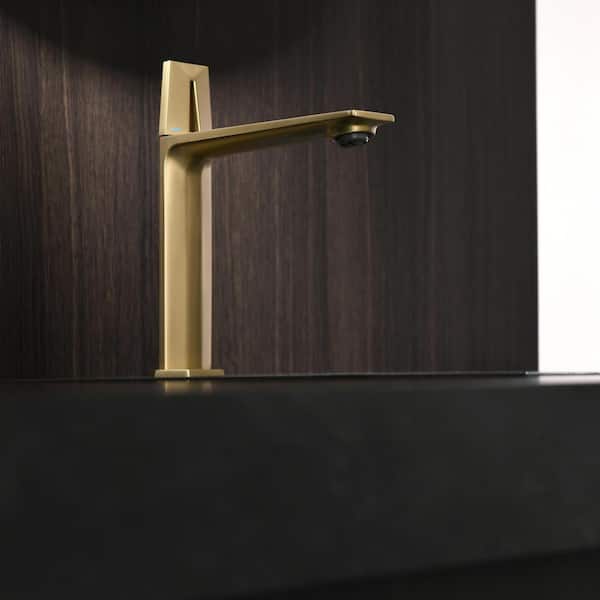 Single Knob Handle Single Hole Bathroom Faucet in Brushed Gold