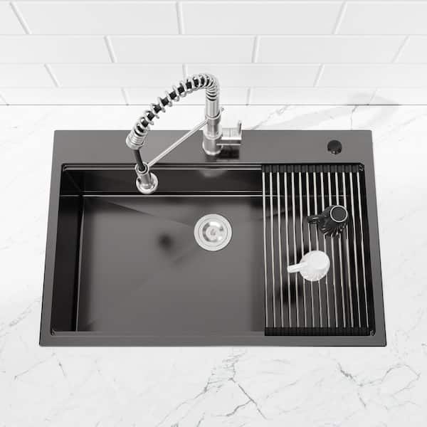 Vitrina 30 in. Drop-In Single Bowl 20 Gauge Black Stainless Steel Kitchen Sink with Cutting Board, Colander