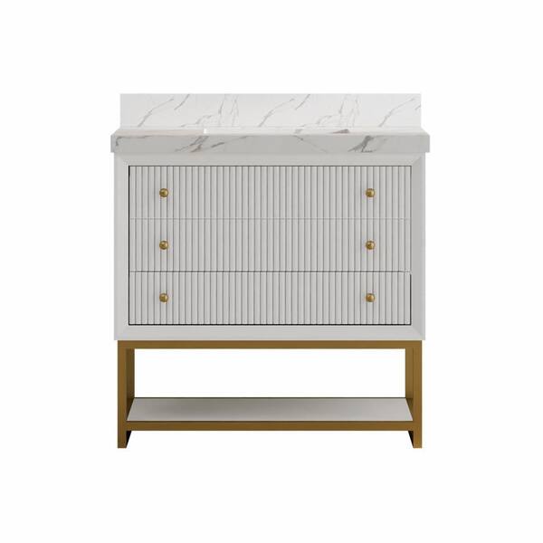 • Modern design with gold accents and soft-close drawer slides