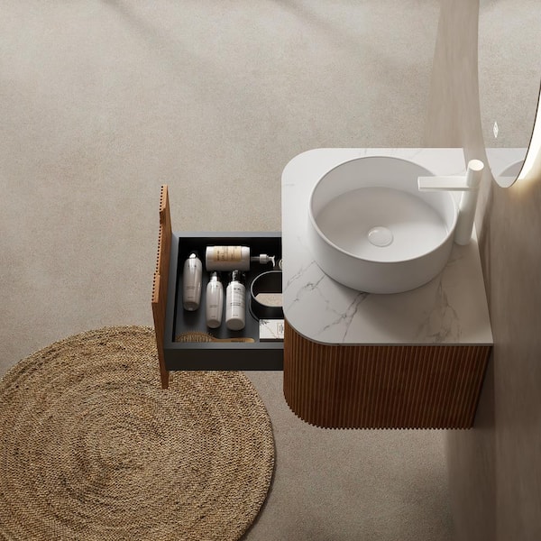 Yunus 24 in. Floating Natural Wood Bath Vanity with White Artificial marble Top Assembled