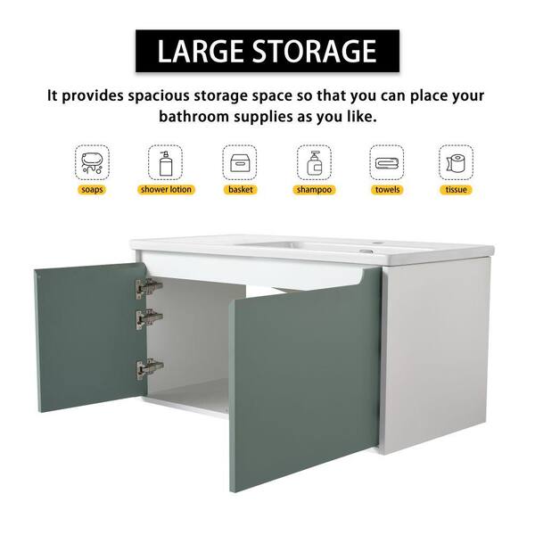 Yunus 35 in. W x 19 in. D x 20 in. H Single-Sink Floating Bath Vanity in Mint Green with White Ceramic Top