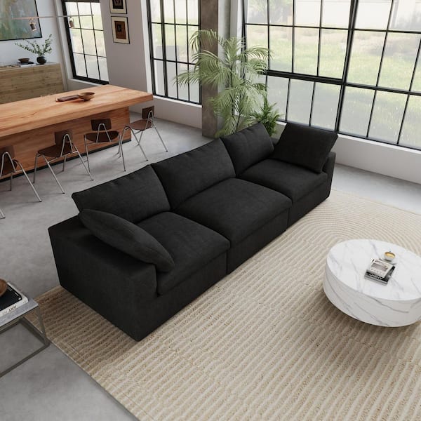 Modular 120.45 in. Deep Seat Linen Rectangle Sectional Sofa with Removable Covers and Cushions in. Black 3-Seater