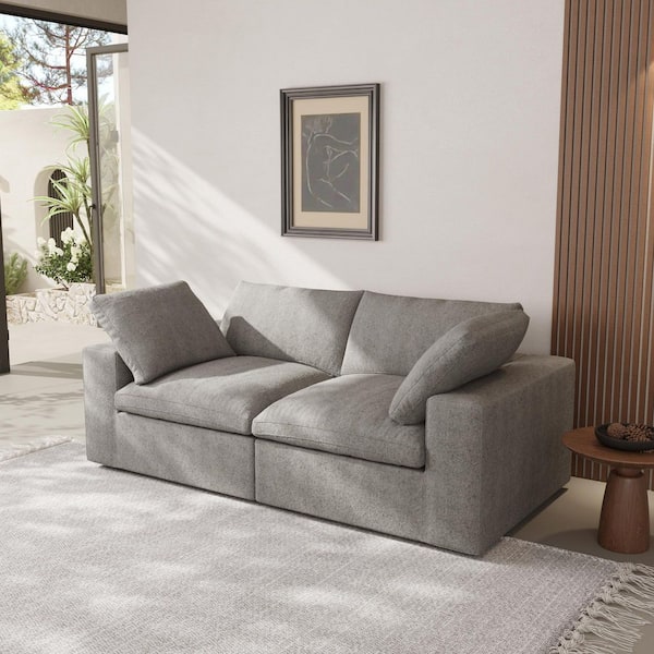 Modular 80.3 in. Deep Seat Linen Sectional Sofa with Removable Covers & Cushions in. Gray LoveSeat