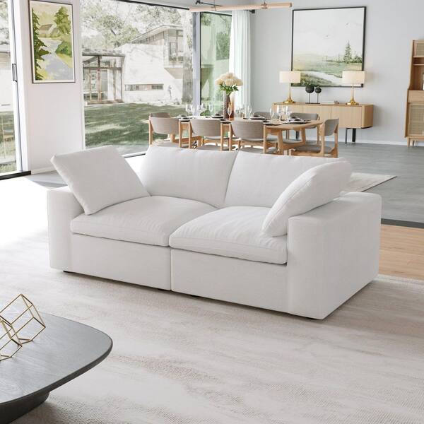 Modular 80.3 in. Deep Seat Linen Sectional Sofa with Removable Covers & Cushions in. White LoveSeat