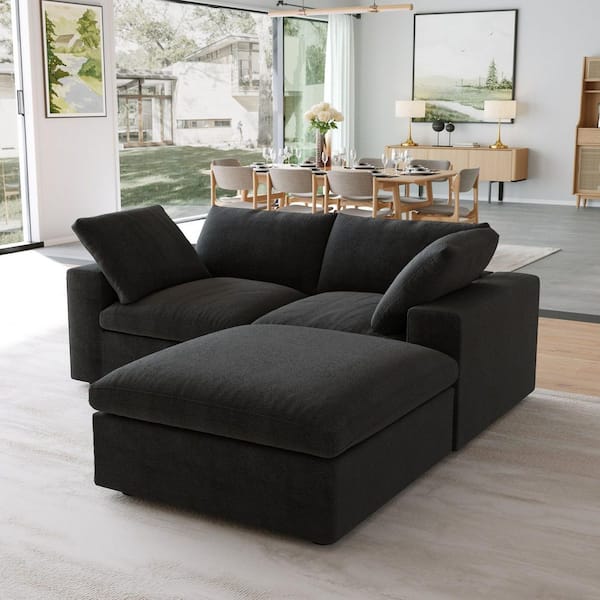 Modular 80.3 in. Deep Seat Linen Sectional Sofa with Removable Covers and Cushions in. Black LoveSeat