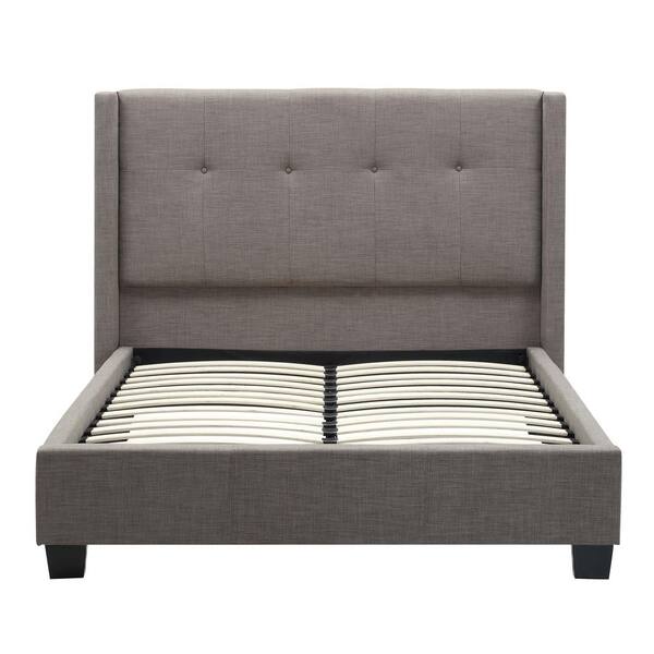 Geneva Madeleine Gray Dolphin Linen King Storage Bed with Hidden Footboard Drawers