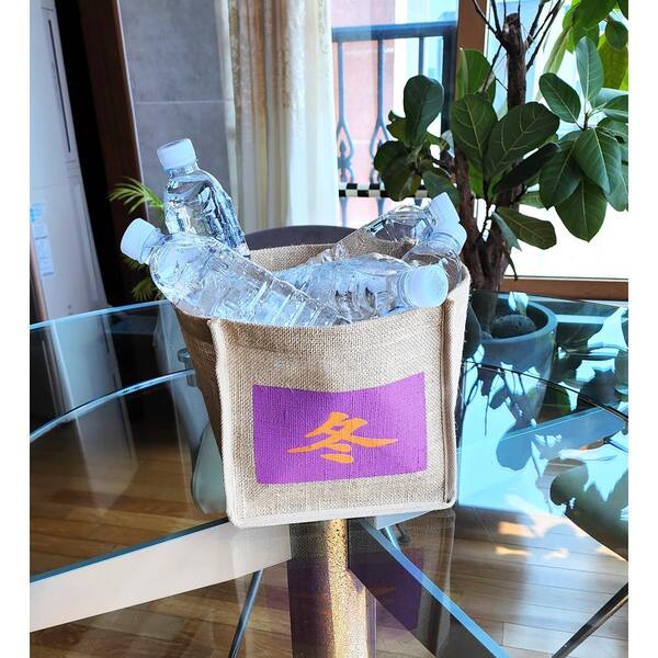 Beige Handmade 8 in. x 10 in. x 12 in. Set of 3 Round Jute Decorative Storage Boxes with Spring Chinese Character