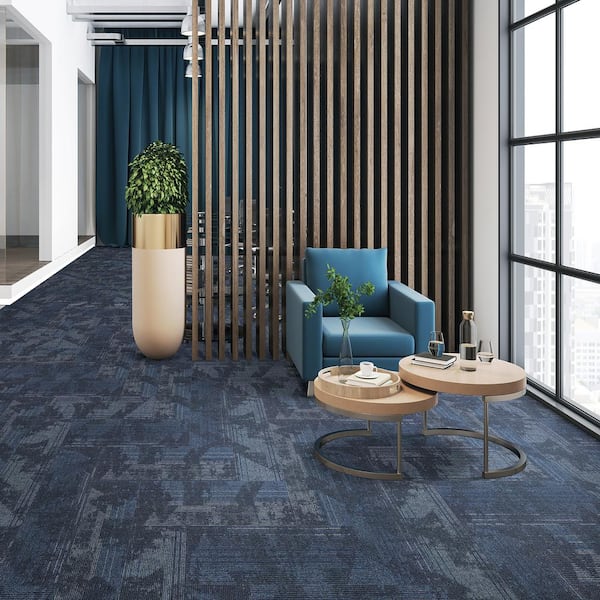 Elite - Azure Knight - Blue Commercial/Residential 12 x 36 in. Glue-Down or Floating Carpet Tile Plank (42 sq. ft.)