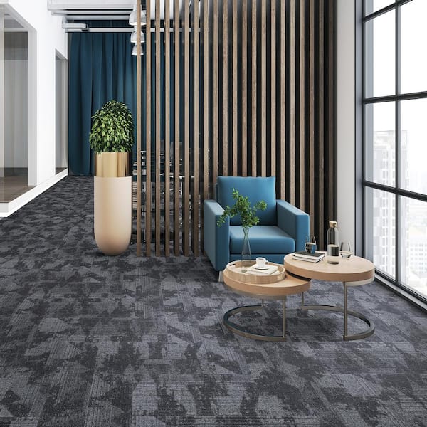 Elite - Dukedom - Black Commercial/Residential 12 x 36 in. Glue-Down or Floating Carpet Tile Plank (42 sq. ft.)