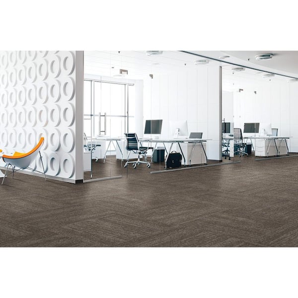 Elite - Elm - Brown Commercial/Residential 24 x 24 in. Glue-Down Carpet Tile Square (96 sq. ft.)