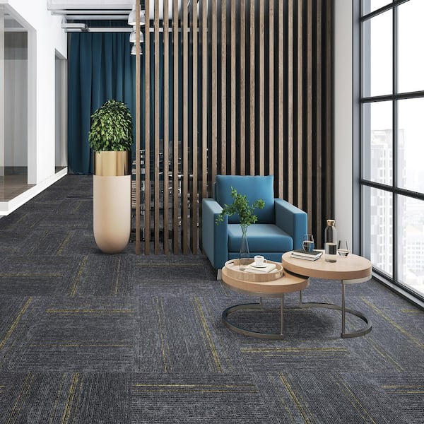 Elite - Yellow Edge - Gray Commercial/Residential 24 x 24 in. Glue-Down or Floating Carpet Tile Square (72 sq. ft.)