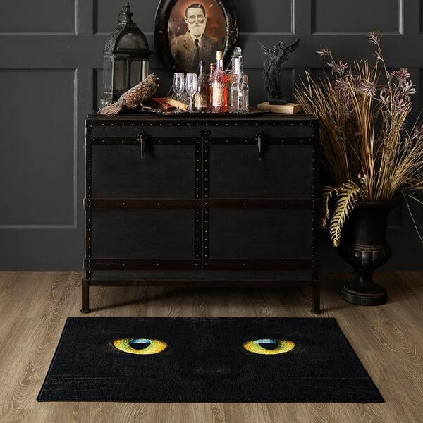 Cat Face Black 2 ft. x 3 ft. 4 in. Machine Washable Holiday Area Rug