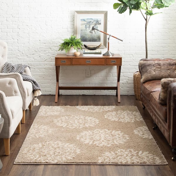 Exploded Medallions Sand Stone 10 ft. x 14 ft. Shag Area Rug