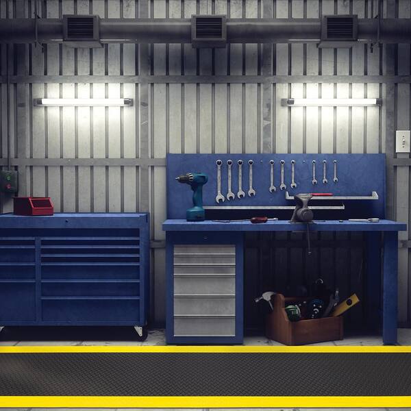 Footlover Diamond Black/Yellow Stripe 24 in. x 120 in. Vinyl Indoor/Outdoor Anti Fatigue Mat