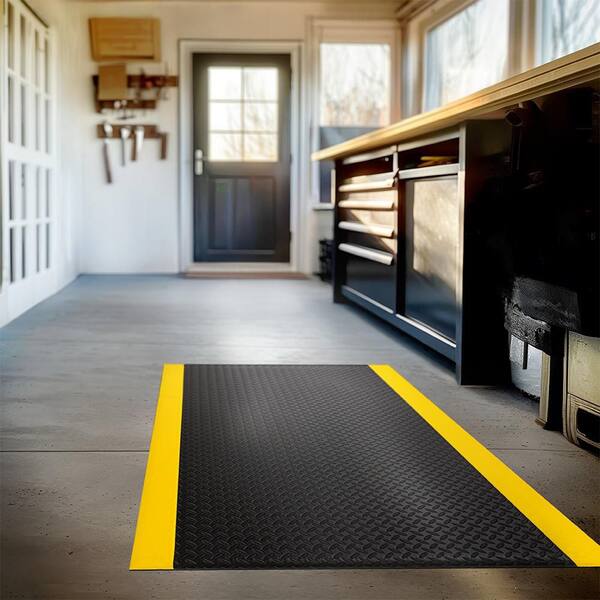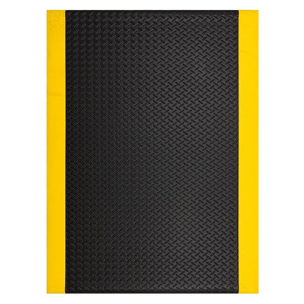 Footlover Diamond Black/Yellow Stripe 36 in. x 48 in. Vinyl Indoor/Outdoor Anti Fatigue Mat