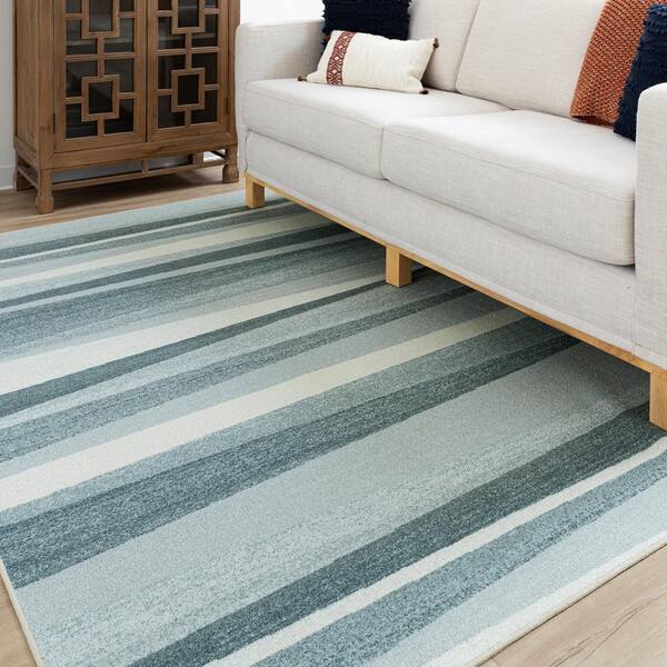 Horizon Stripe Navy 4 ft. x 6 ft. Machine Washable Area Rug