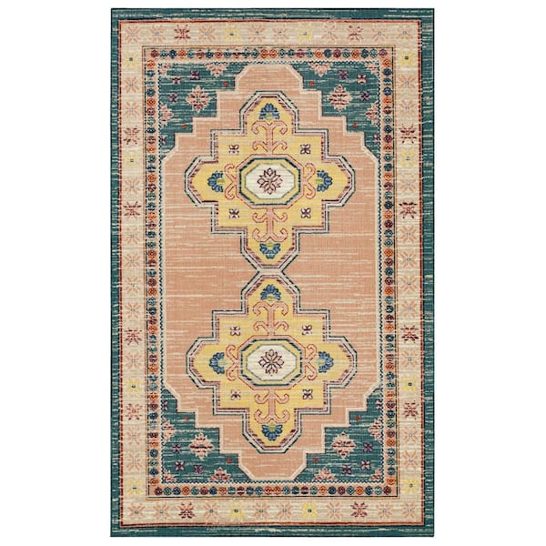 • Southwestern medallion design, nonslip latex backing, indoor only