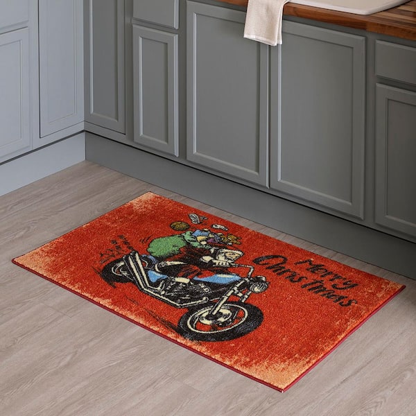 Motorcycle Santa Red 2 ft. 6 in. x 4 ft. 2 in. Machine Washable Area Rug