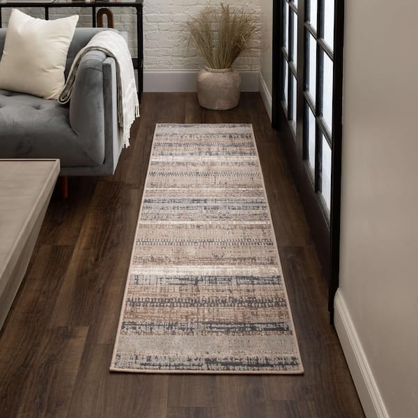 Payette Brown 2 ft. 1 in. x 7 ft. 6 in. Transitional Striped Linear Runner Rug