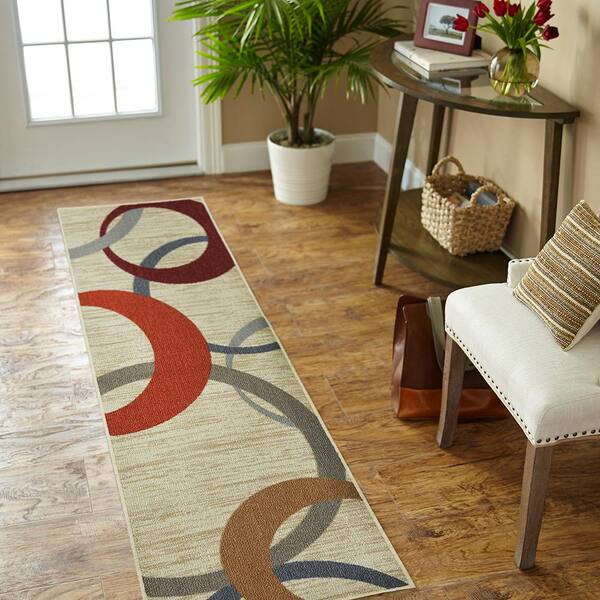 • Cream runner rug with 1/2 inch thickness, machine washable