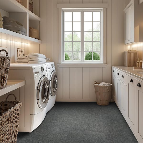 Single Rib Polyester Gray Residential 12 in. x 12 in. Peel and Stick Carpet Tile Square 10 sq. ft.
