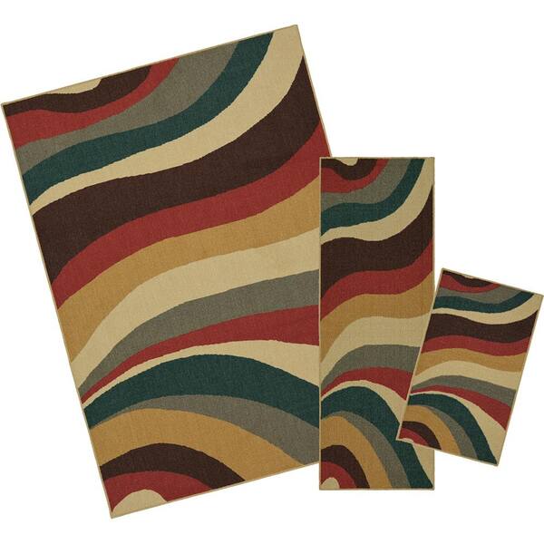 Wave Impression Multi 5 ft. x 7 ft. 3-Piece Rug Set