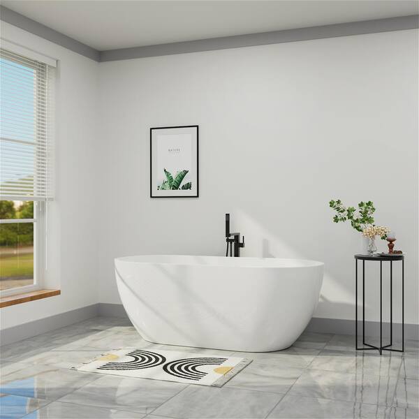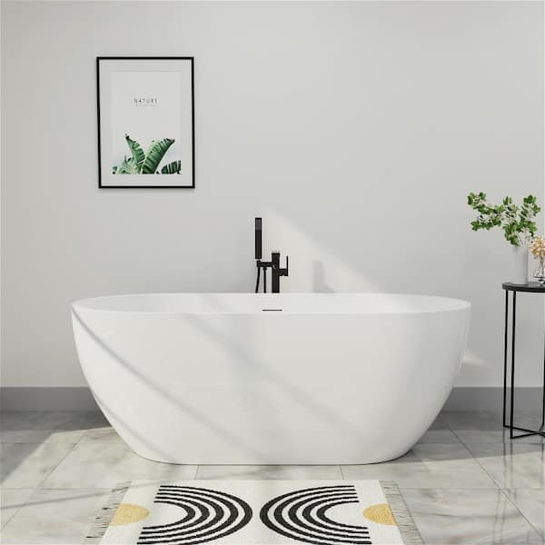 59 in. H Acrylic Flatbottom Non-Whirlpool Bathtub Freestanding Soaking Center Drain Tubs in Glossy White
