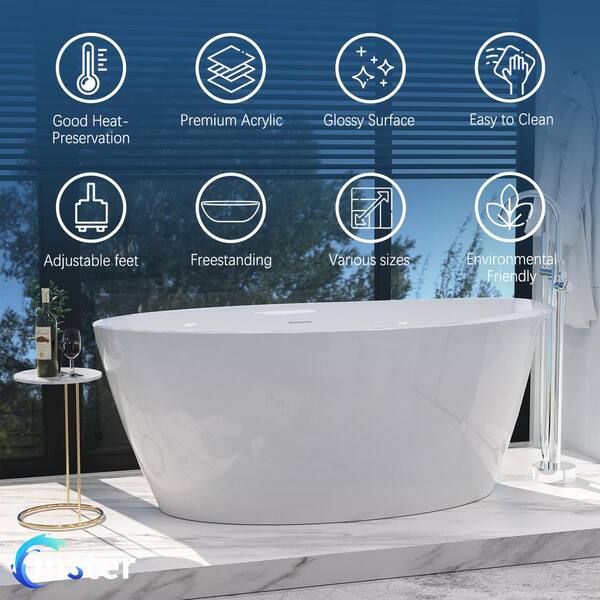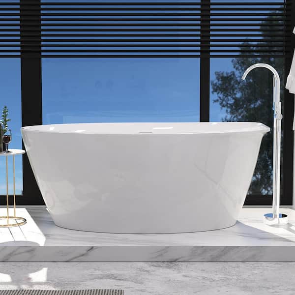 59 in. Modern Acrylic Oval Freestanding Shaped Curve Edge Soaking Flatbottom Non-Whirlpool Bathtub in White