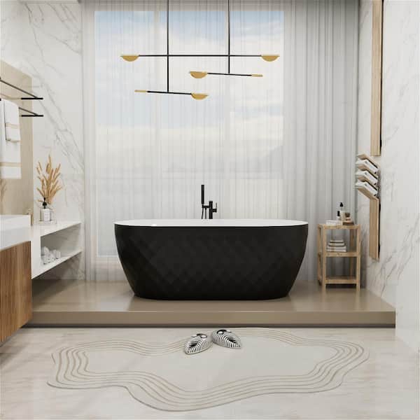 59 in. x 28 in. Acrylic Flat Bottom Non-Whirlpool Soaking Bathtub in Black