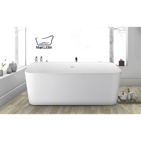 67 in. Acrylic Double Slipper Soaking SPA Tub Stand Alone Freestanding Tub Flatbottom Bathtub in White