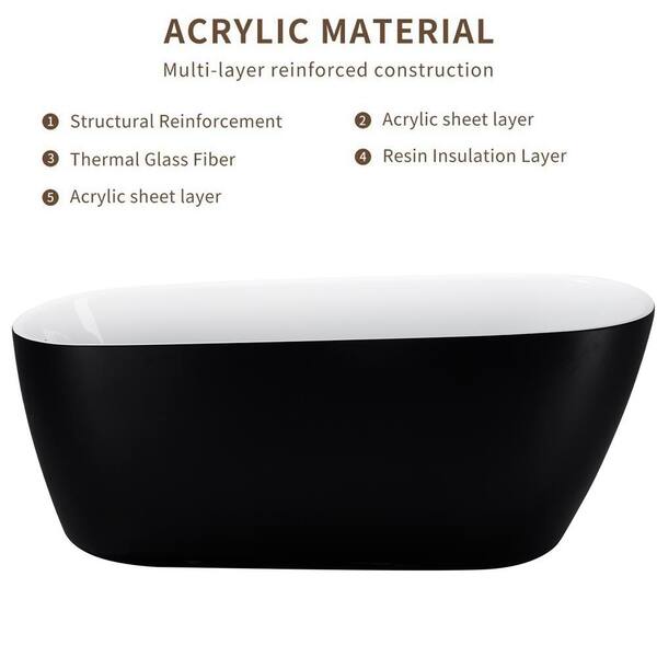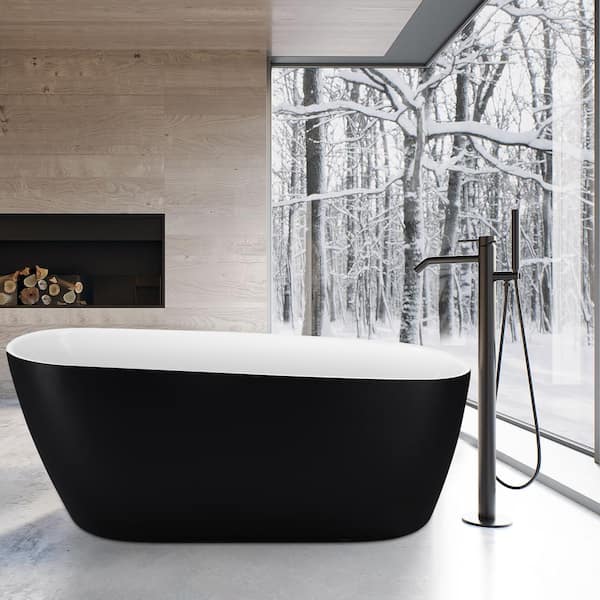 MUTE 59 in. Outer Black Acrylic Flatbottom Freestanding Non-Whirlpool Single Slipper Soaking Bathtub