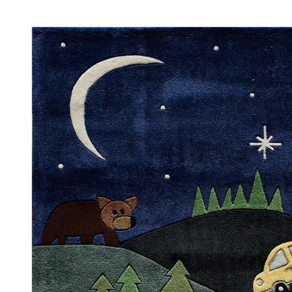 Lil Mo Whimsy Camping Fun Blue 5 ft. x 7 ft. Indoor Kids Area Rug